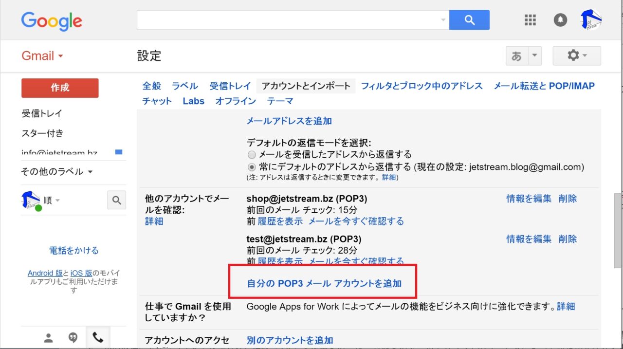 以上、デスクトップ版「Gmail」に POP 形式のメールアカウントを登録する方法のご紹介でした。