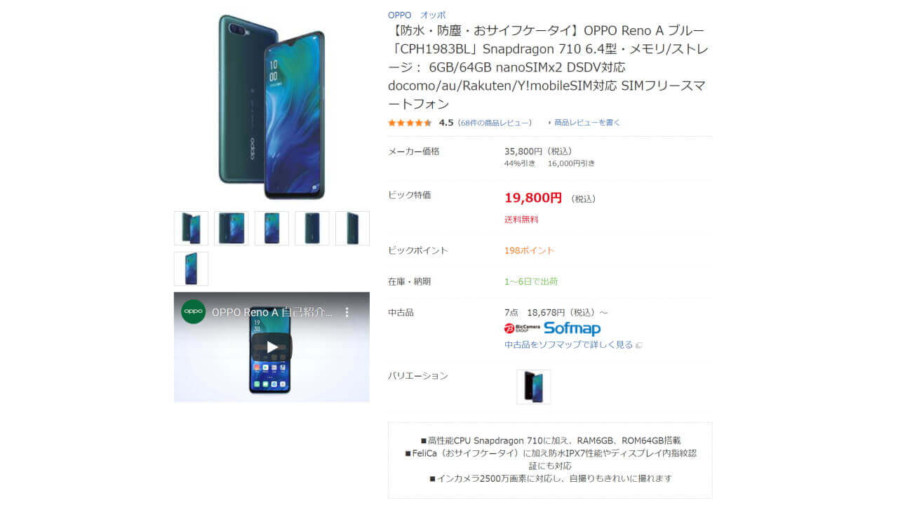 - ビックカメラで「OPPO Reno A(64GB モデル)」がほぼ 50% 引き超絶特価!