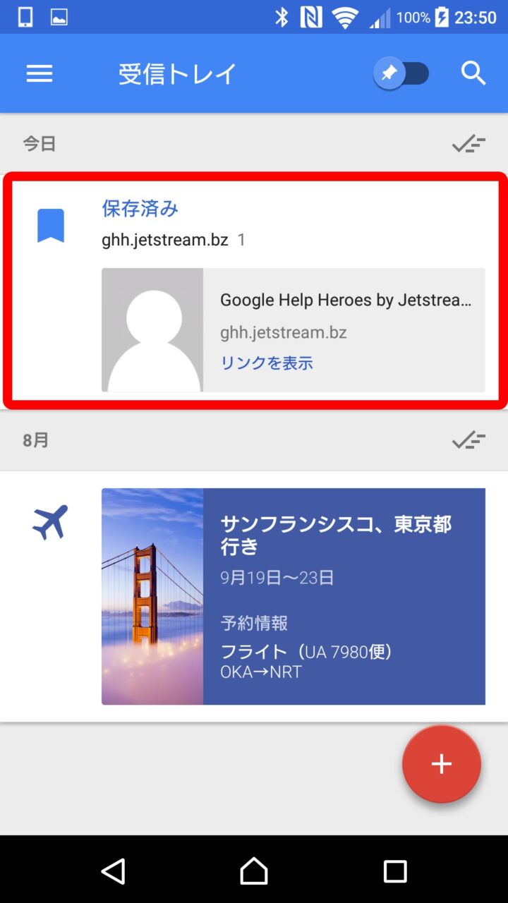 “リンク保存” はデスクトップ版「Inbox」だけでなく、スマートフォンアプリでも同じように利用することができます。