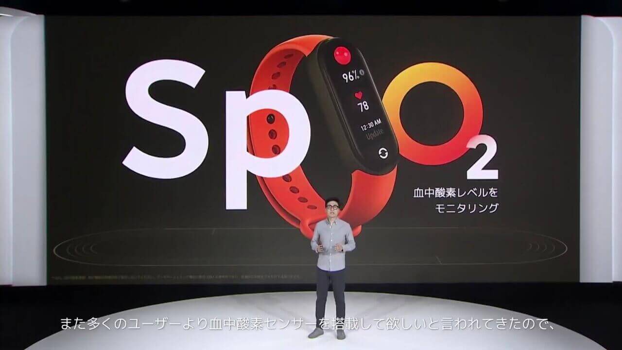 そして新型「Mi Smart Band 6」は、シリーズ初の血中酸素飽和度(SpO2)レベル測定機能も実装しています。