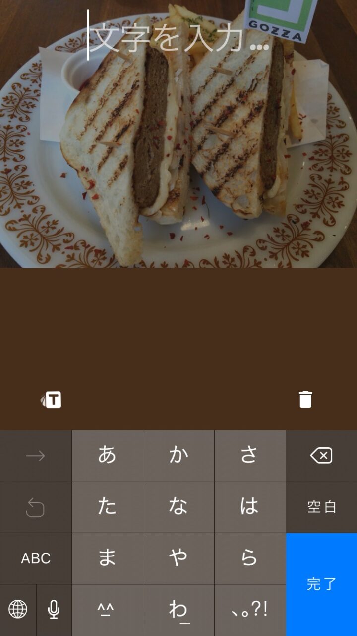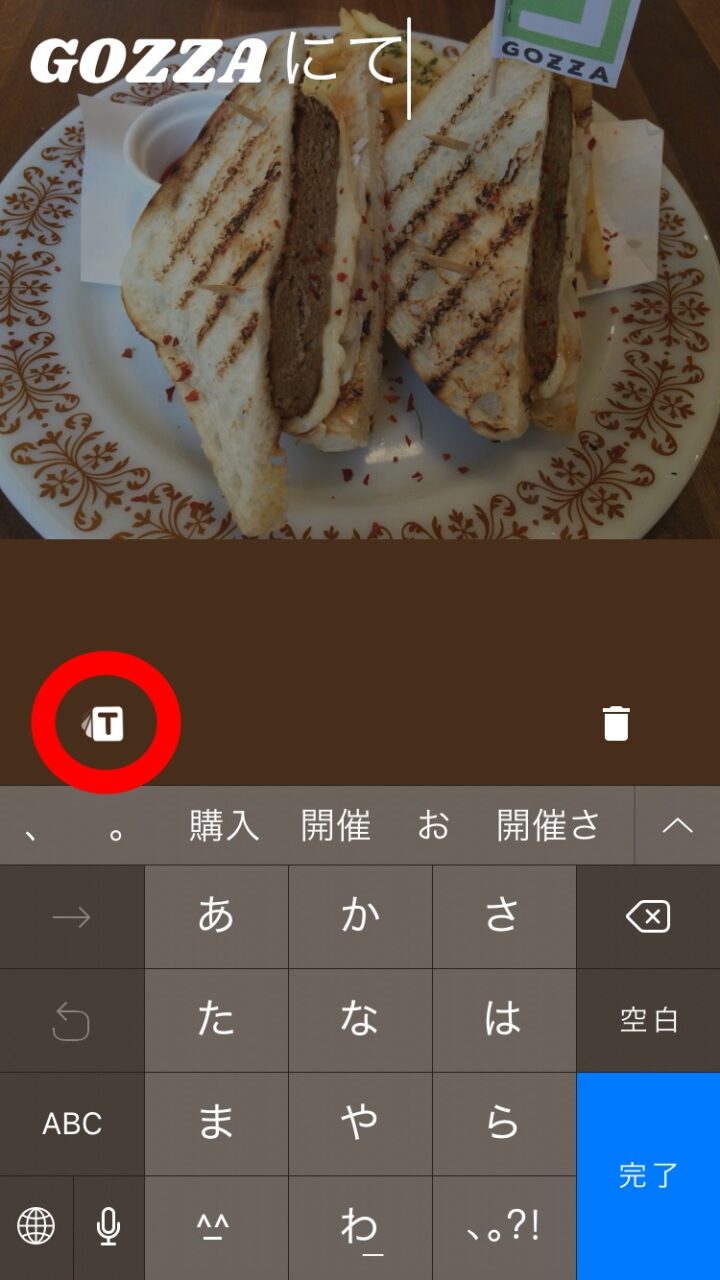 “テキスト挿入” は文字通り “ライブフォト動画” にテキストを挿入できる機能です。こちらも “ライブフォト動画” の下に表示される “T” アイコンをタッチすることでテキスト入力モードとなります。