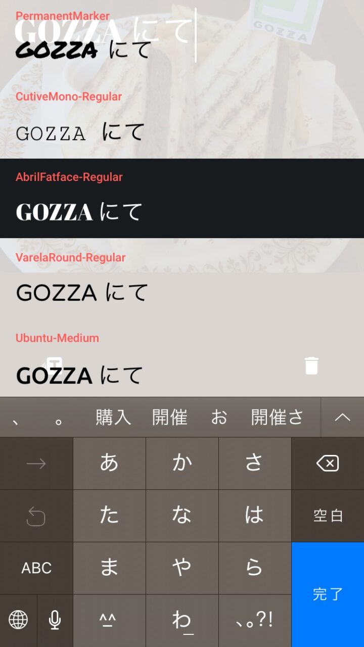 またテキスト入力モード中に表示される “T” アイコンをタッチすることで、フォントを変更することができ、長押しすることでフォントの一覧を表示することが可能です。