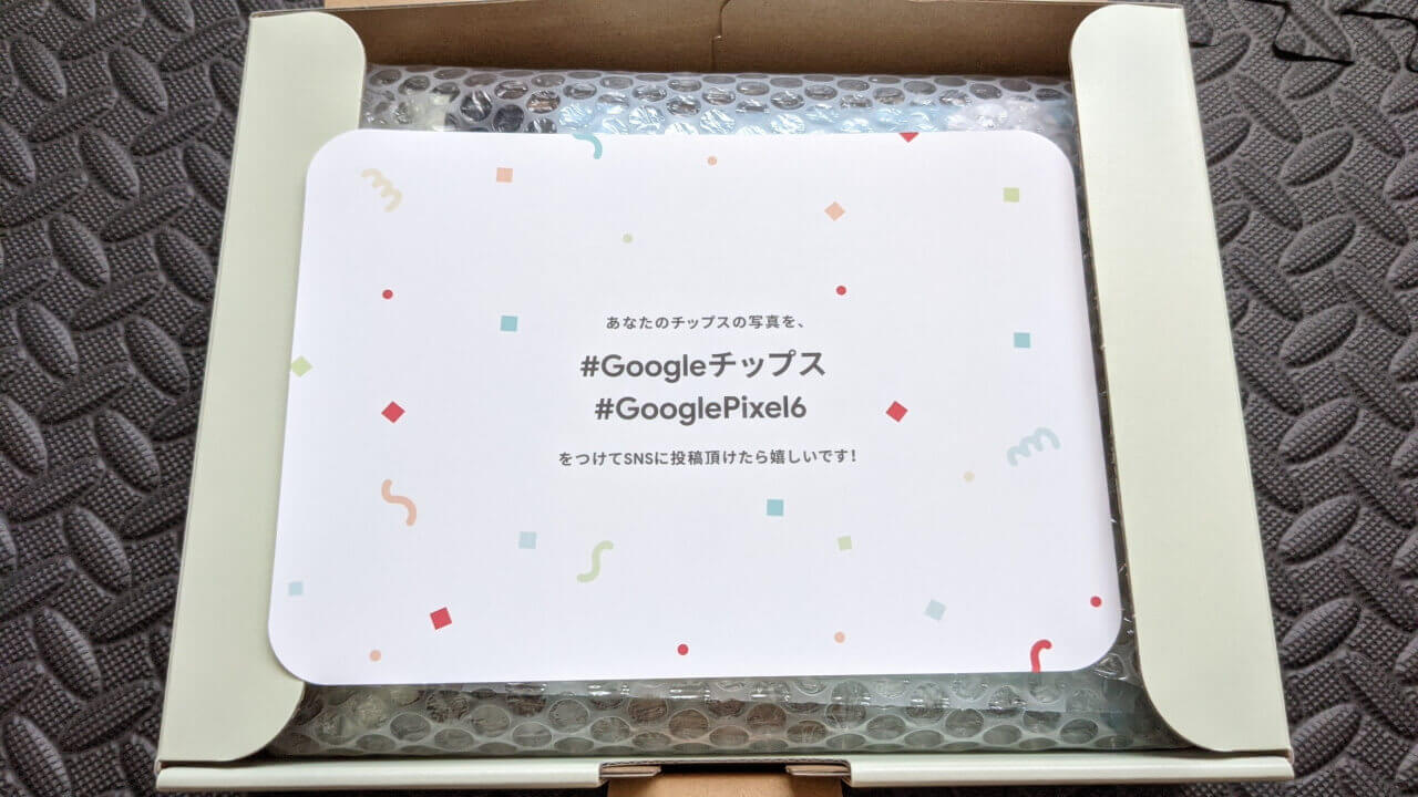 そしてサンキューレターの裏面はこんな感じ。ハッシュタグ[#Googleチップス][#GooglePixel6]を付けて SNS に写真を投稿すると Google 様が喜ぶようなので、のちほど神(Google)への朝の拝みと共に行いたいと思います。