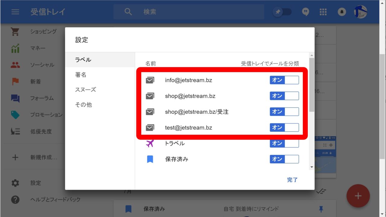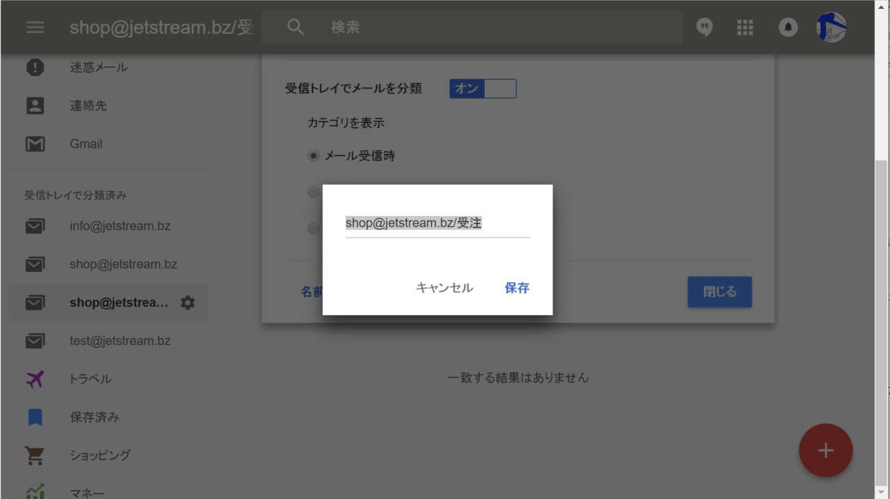 ラベルは「Inbox」で名前を変更することも可能ですが、「Inbox」側で「“ラベル” /」を消してしまうと、「Gmail」では “サブラベル” から “ラベル” に昇格してしまうので注意してください。