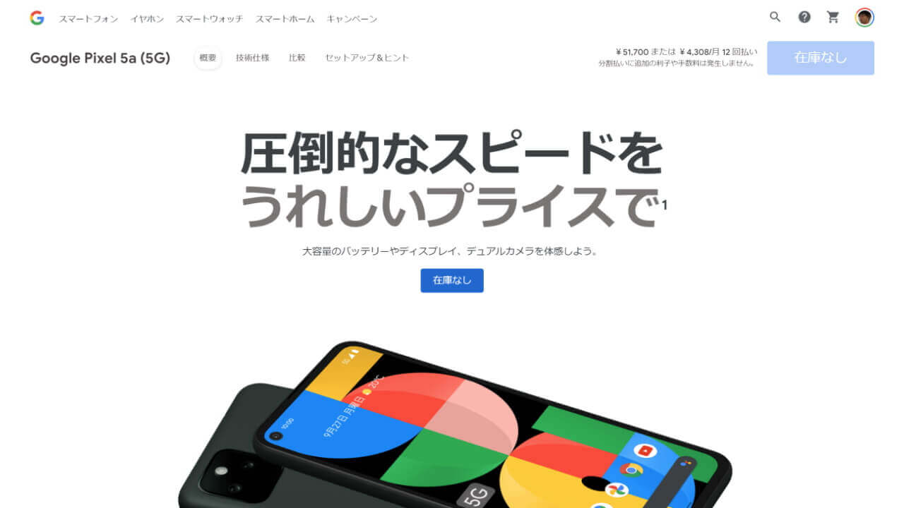 - Google ストアで「Pixel 5a(5G)」在庫切れから一か月経過