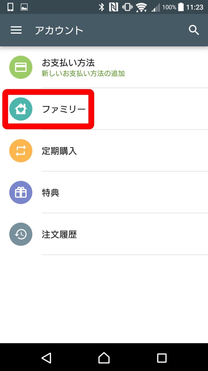 「ファミリーライブラリ」の設定:Android