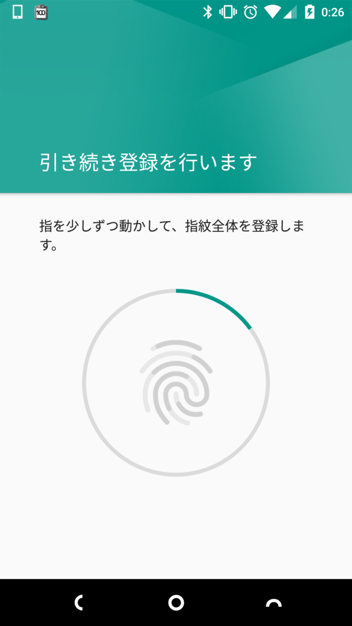 登録方法は、Android の指紋センサー部分に、登録する指の指紋部分を、少しずつ移動させながら何度か乗せて読み込ませます。