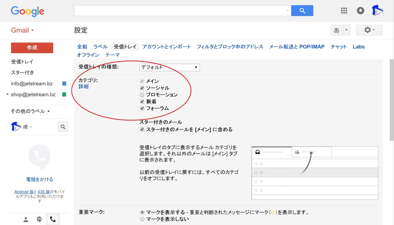 「Gmail」のカテゴリタブ