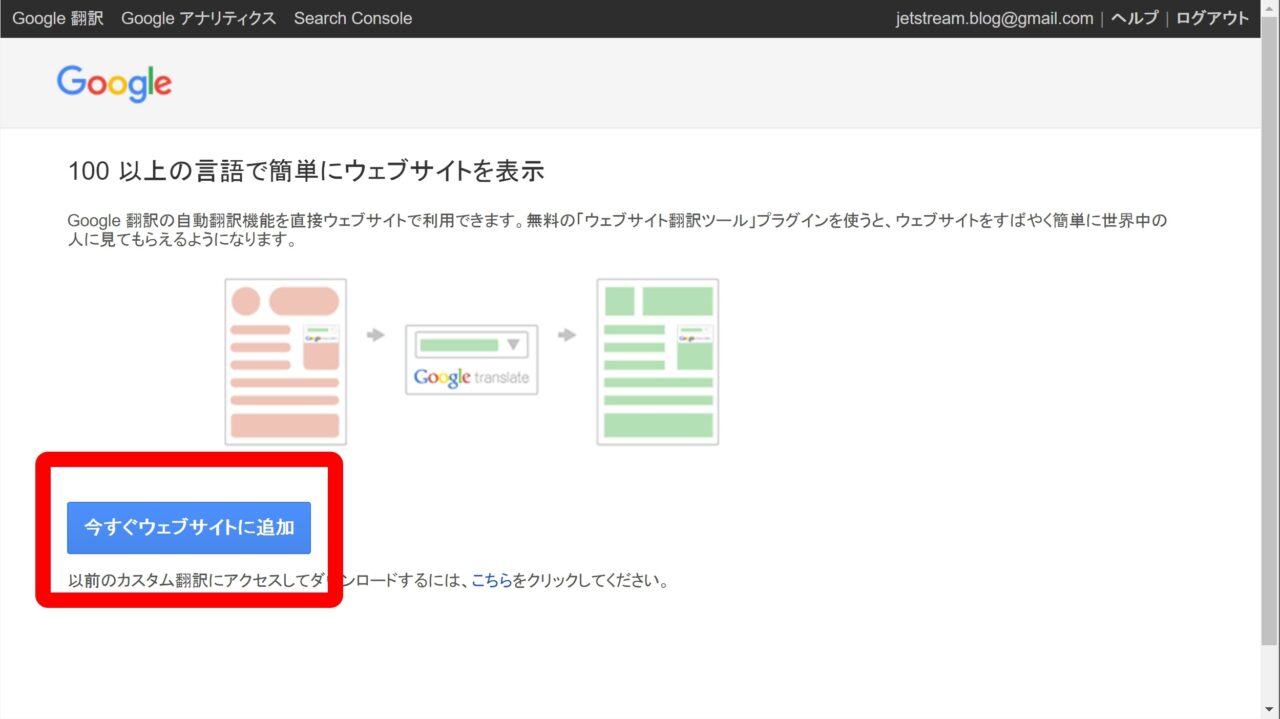 表示されたページの “今すぐウェブサイトに追加” をクリックします。