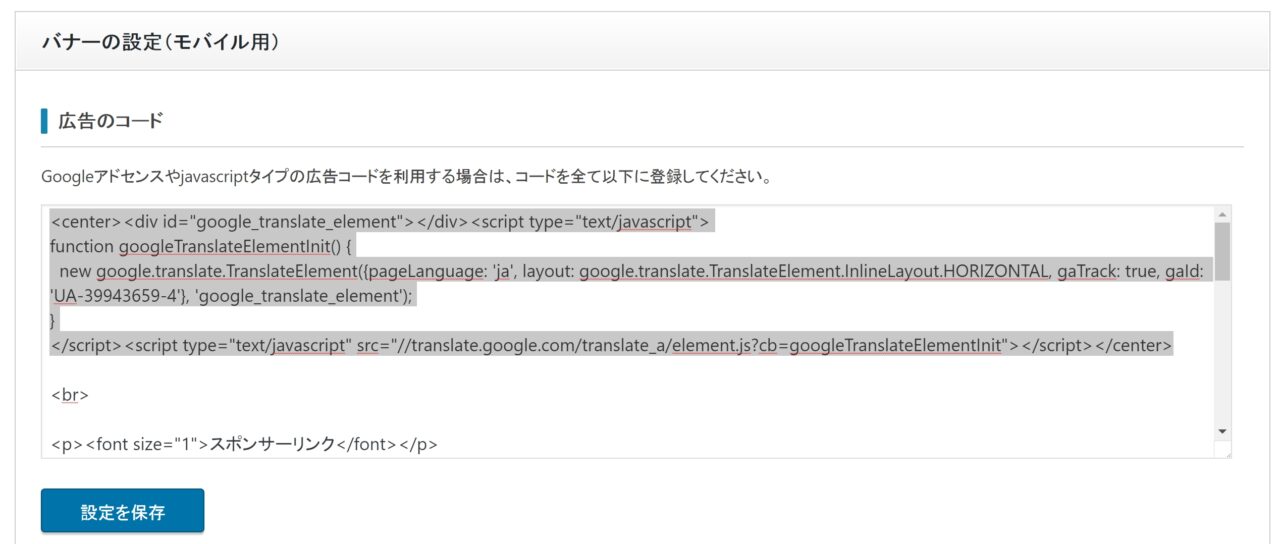 貼り付けて保存したら、実際に翻訳ツールバーが表示されるか確認してみてください。