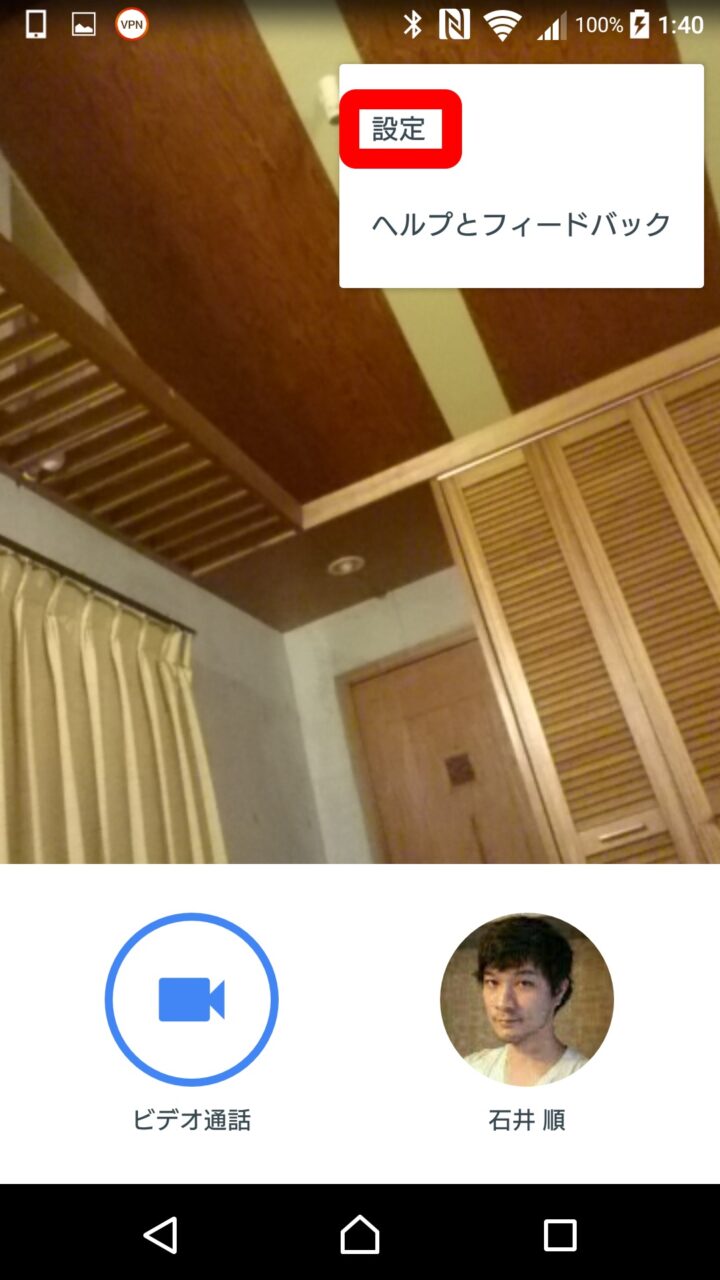 「Google Duo」の設定はメニューをタッチして、“設定” から開きます。
