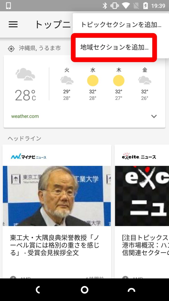 そのためスマートフォンアプリ「Google ニュースと天気」で “地域セクション” を追加する方法をご紹介させていただきます。