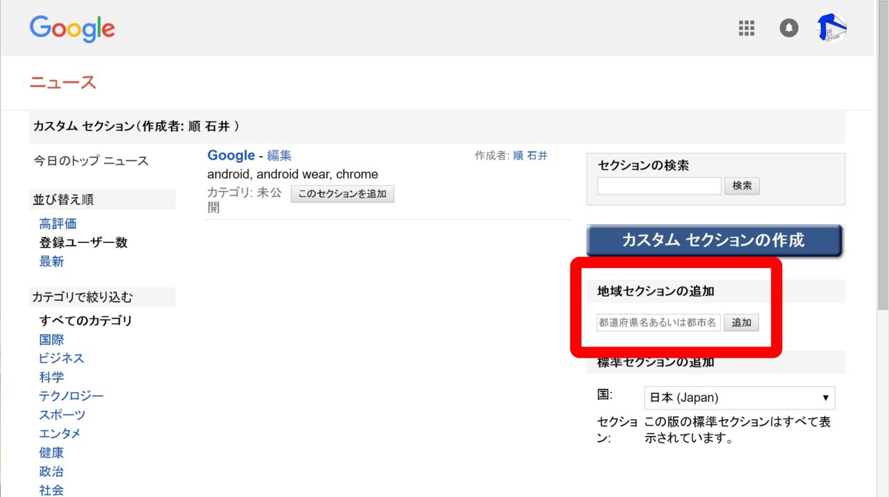 【Google ニュース活用Tips:その⑤】“地域セクション”を追加する方法