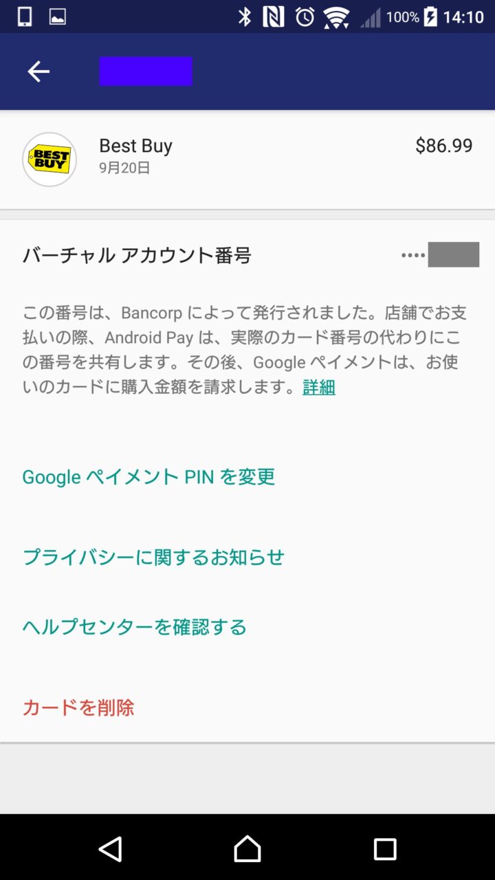 クレジットカード情報を Anroid 本体に直接登録せず、“バーチャル アカウント番号” というランダムで生成される仮想番号を用いて登録することにより Android からクレジットカード情報が漏れる心配がなく、安全性が高いことが最大のメリットとなります。そのためクレジットカードを持ち運ぶよりも安全なわけです。