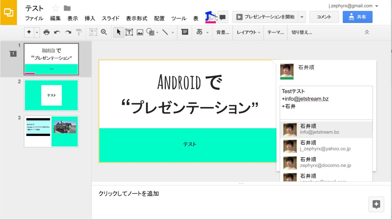 この “コメント” では任意のテキストのほかに、指定のユーザーのメールアドレスや名前を追加して、そのユーザーに向け “コメント” を追加することが実は可能です。この機能は例えば、個人で編集しているファイルをほかのユーザーに確認してもらったり、複数の共同編集者がいる場合にその中からユーザーを指定してするなど、様々に活用することができます。