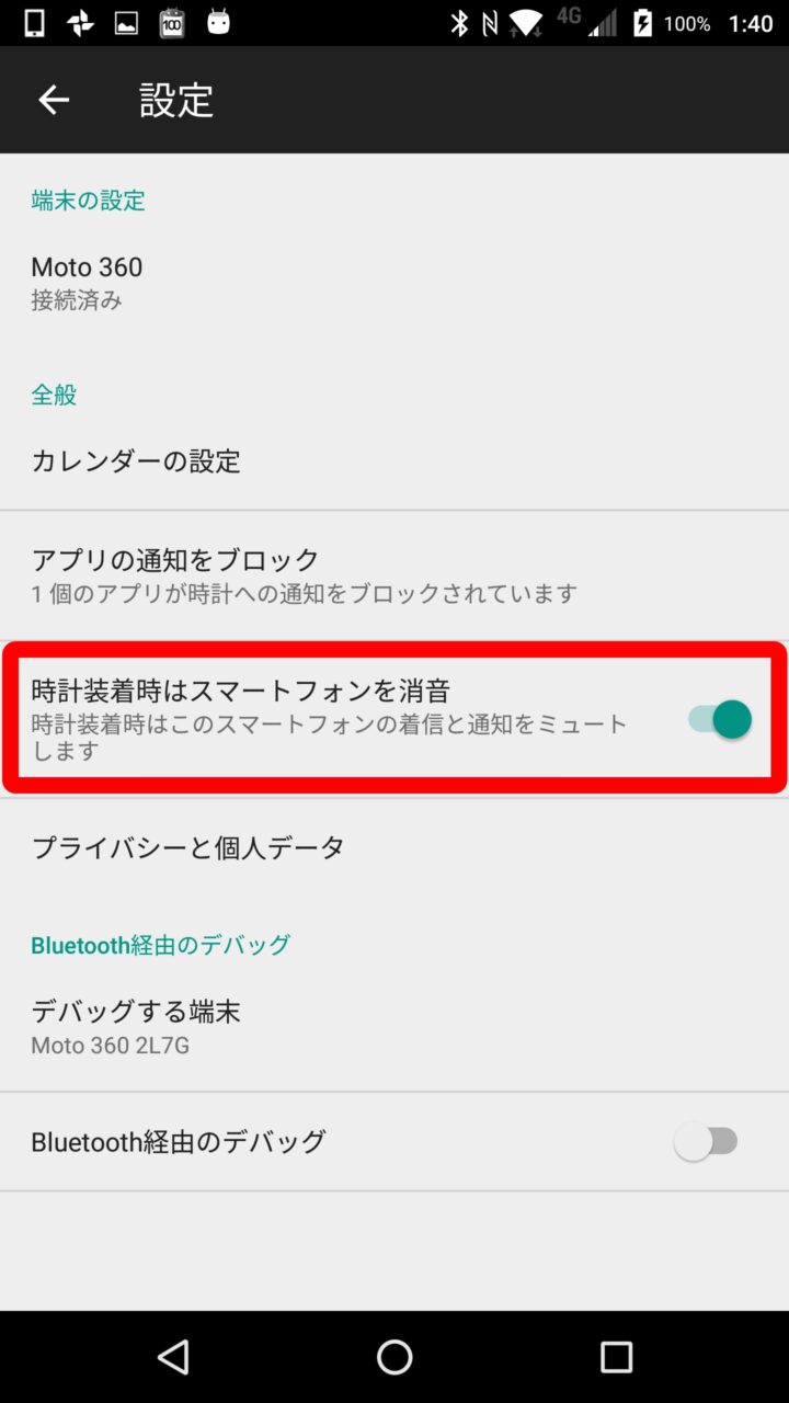 「Android Wear」装着時にスマートフォン側をマナーモードにする設定