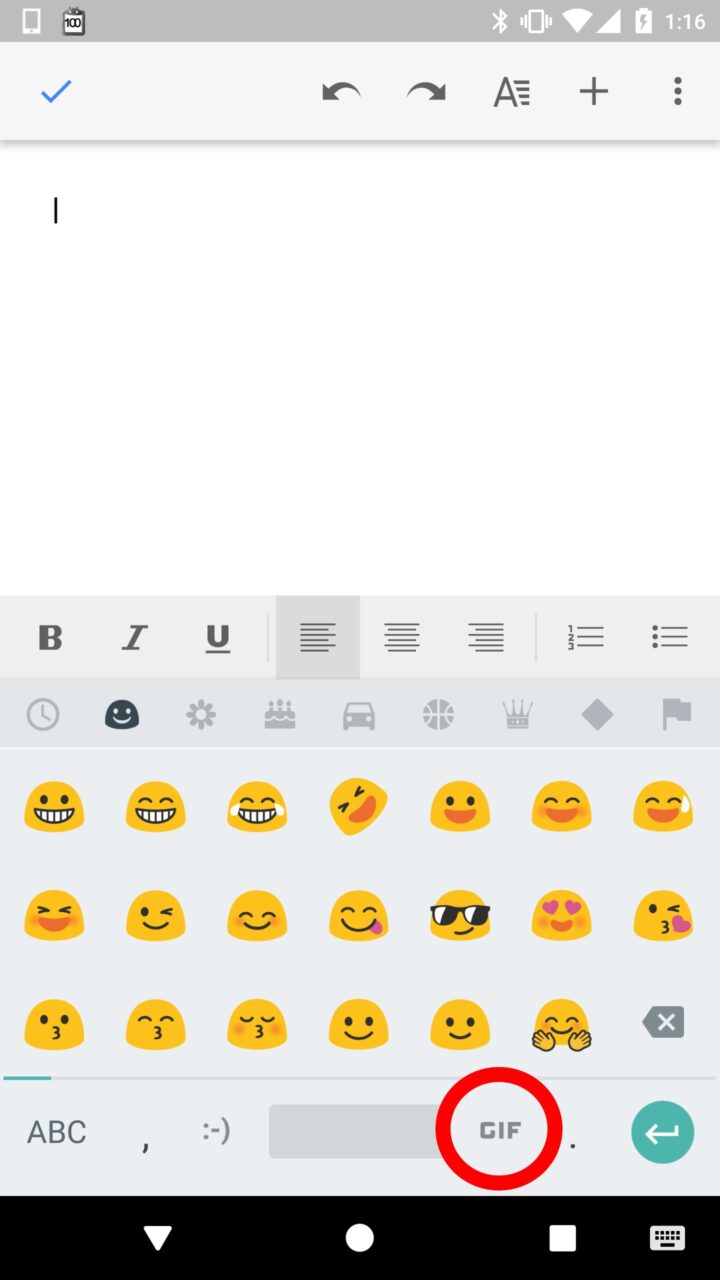 Android 版「Google ドキュメント」は 2016 年 12 月のアップデートにおいて、「Google キーボード」から “GIF アニメーション” を貼り付けることができるようになりました。ただしその方法は少しわかりにくくなっているので、今回の内容を参考にしていただければと思います。