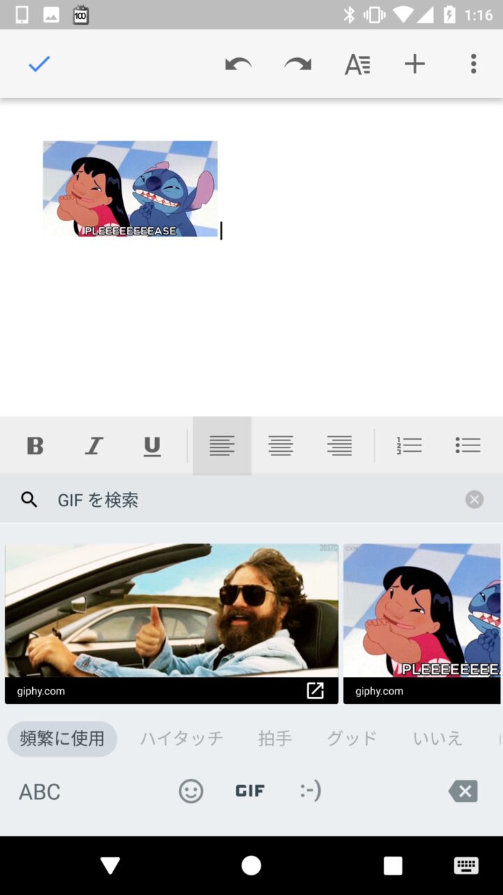 以上、Android 版「Google ドキュメント」で「Google キーボード」から GIF を貼り付ける方法のご紹介でした。