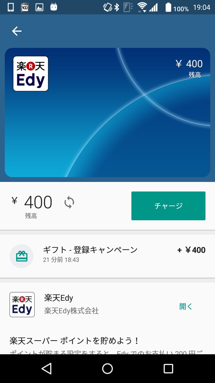 以上、「Android Pay」に登録した “Edy カード” にチャージする方法の解説でした。
