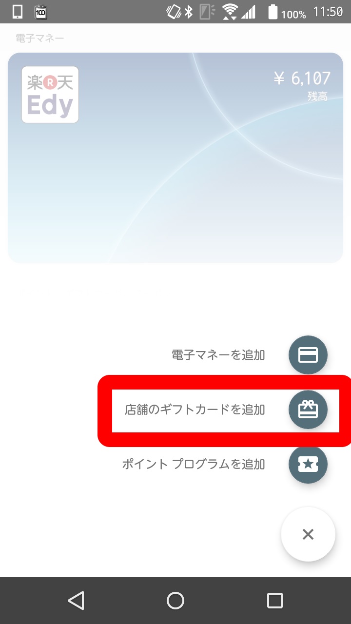 「Android Pay」は「楽天 Edy」の決済機能と「楽天ポイントカード」などの “ポイント プログラム” 機能のほかに、ギフトカードの追加機能も実装されています。