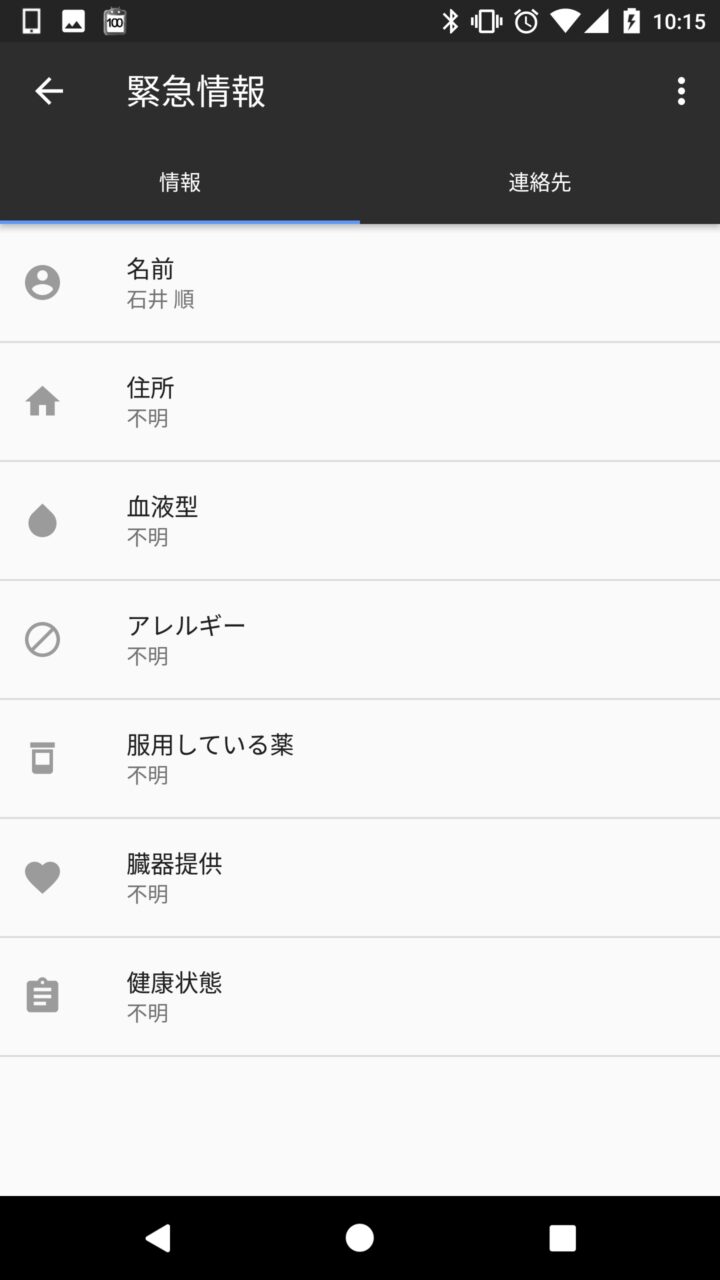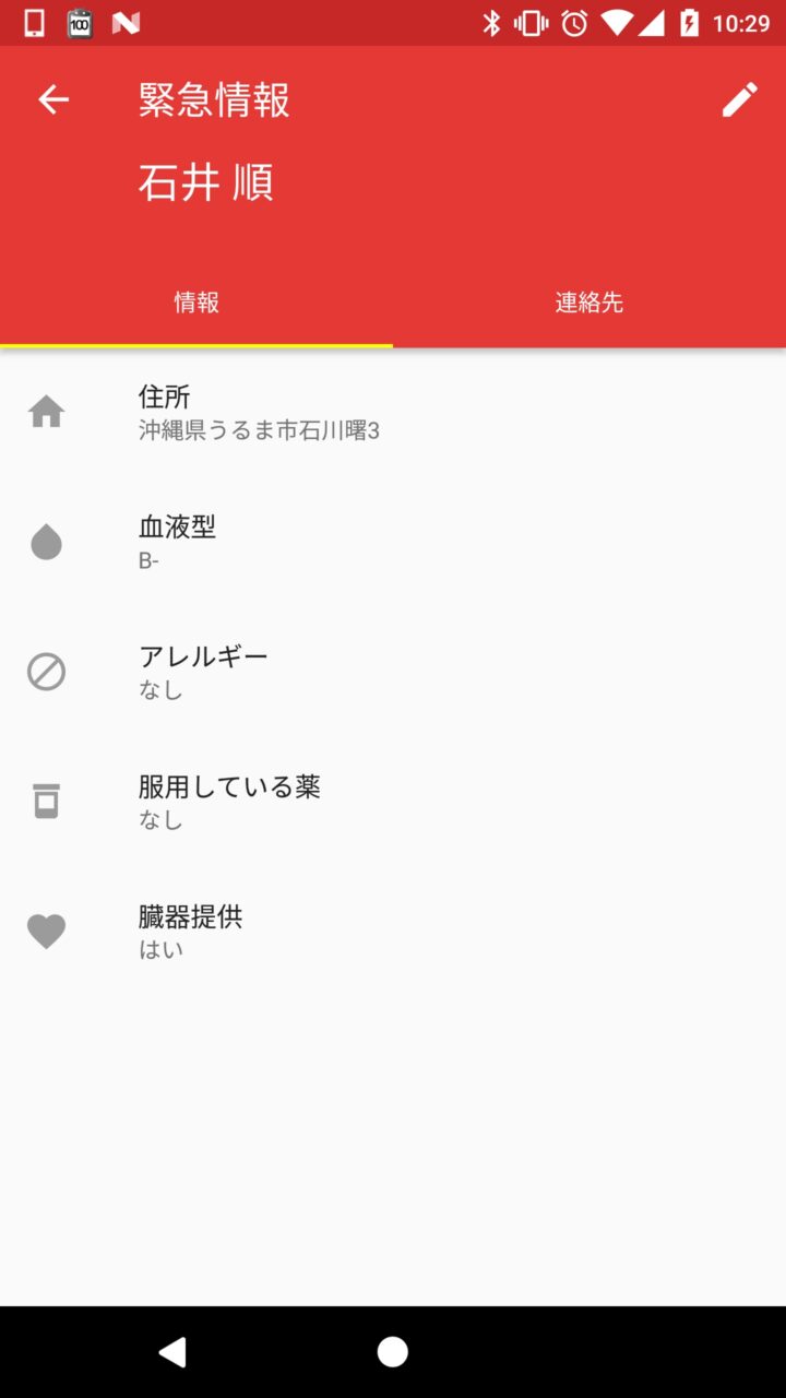 “緊急情報” の表示は Android ユーザーに代わって “臓器提供” の有無などの意思表示をしてくれる機能ですが、Android の画面ロックを解除しなくても設定した情報が誰でも見れるため、必要以外の情報は入力しないようにしましょう。