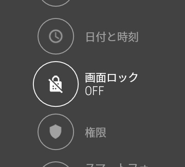 Android Wear に画面ロックを設定する方法はアプリドロワーから “設定” をタッチして、表示される設定ページを下にスクロールし “画面ロック” をタッチして進みます。