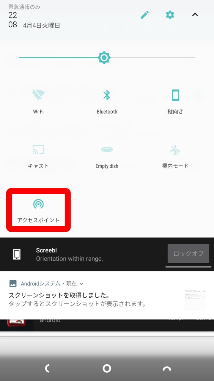 あとはテザリングを開始するだけです。テザリングを開始するには “ポータブル Wi-Fi アクセスポイント” のスイッチを オン にします。このほかにクイック設定の “アクセスポイント” アイコンをタッチすることでテザリングの オン / オフ を利用することもできます。