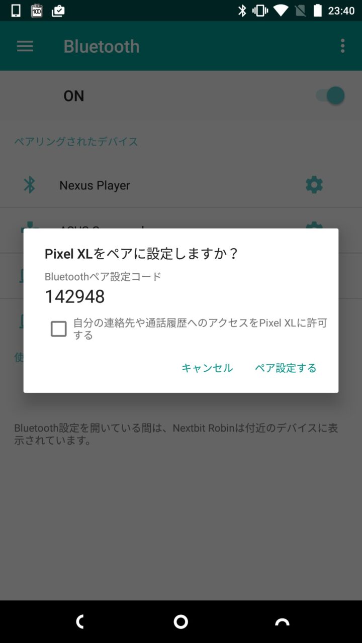 次にクライアントとする Android とホストとする Android とを Bluetooth でペアリングします。