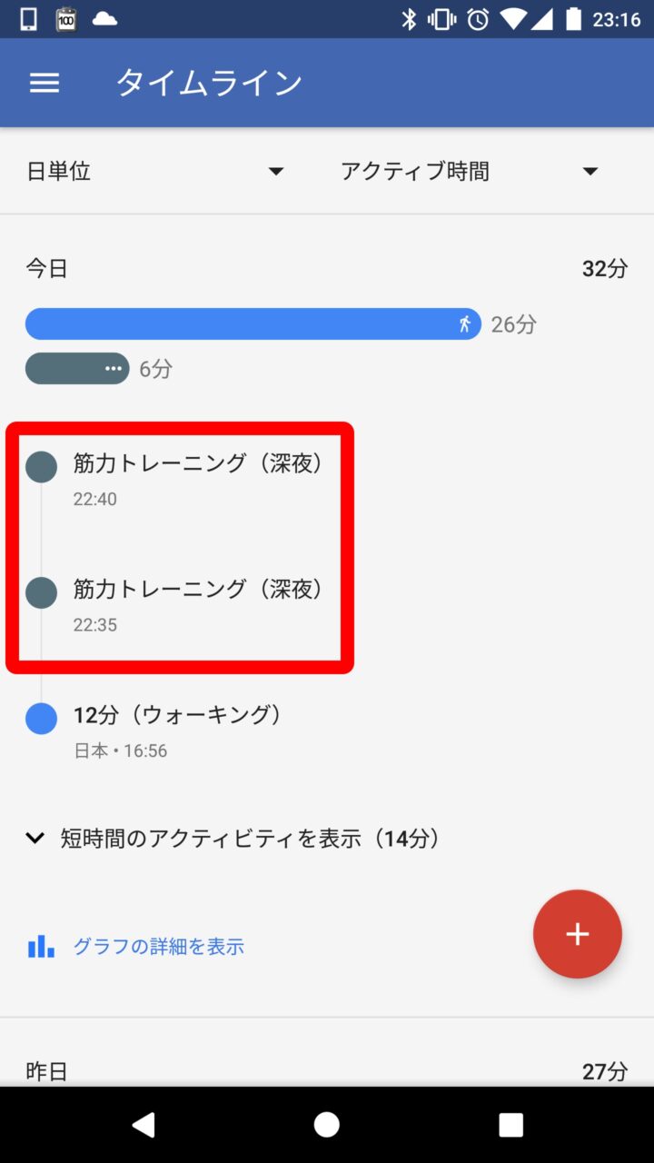 これで行ったエクササイズが “筋力トレーニング” として「Google Fit」のアクティビティに登録されます。“筋力トレーニング” の使い方は以上です。