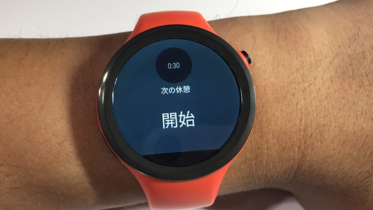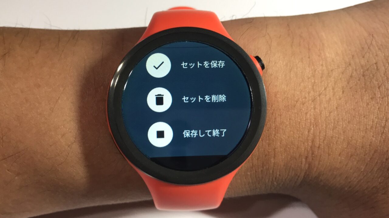 “セットを保存” をタッチすると休憩時間に入るので体を休め、休憩時間が終わって Android Wear がバイブレーションで知らせてくれたら次のセットを開始し、また終わったら “セットを終了” をタッチして回数の修正などの一連の操作を行います。そしてエクササイズが完全に終了したら “保存して終了” をタッチします。