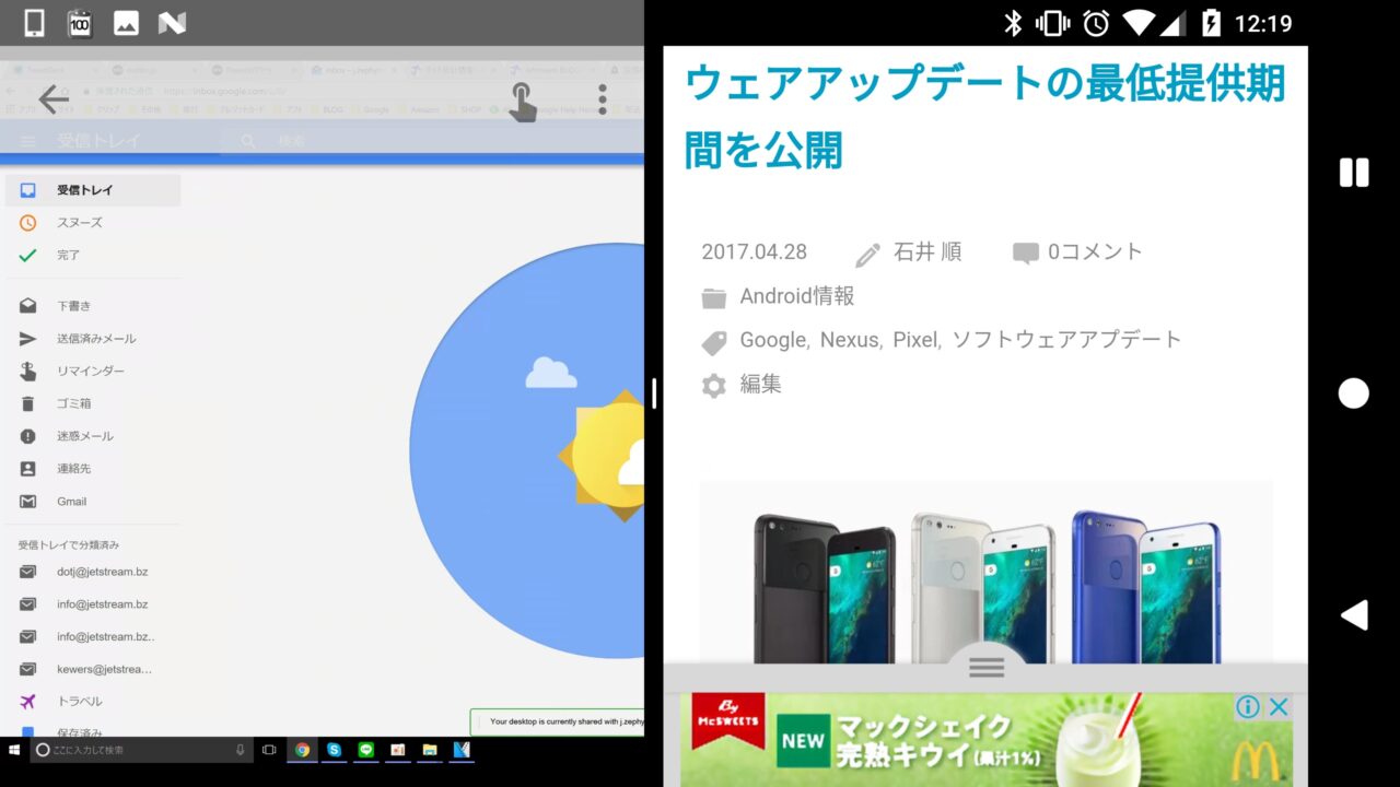 「Chrome リモートデスクトップ」がAndroid 7.0 Nougatの“マルチ ウィンドウ”をサポートしました
