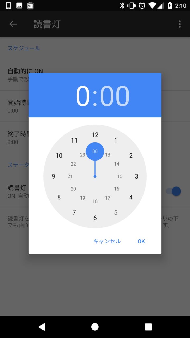 “日の入りから日の出まで” はその時期の日の入りと日の出が適用されて自動的に「読書灯」の オン / オフ が行われます。このほか、クイック設定にも「読書灯」のスイッチが用意されているので、クイック設定にスイッチを配置して オン / オフ を行うことも可能です。