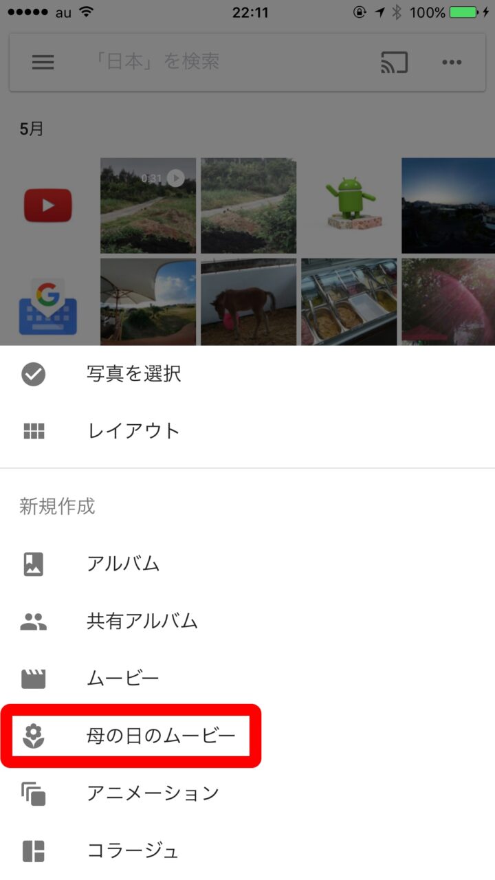Android と iPhone(iOS)版の「Google フォト」アプリは 2017 年 4 月末のアップデートで、5 月の母の日に向けたムービー作成機能 “母の日のムービー” が追加され利用できるようになりました。この機能は「Google フォト」のアシスタント機能を応用した自動ムービー作成機能です。