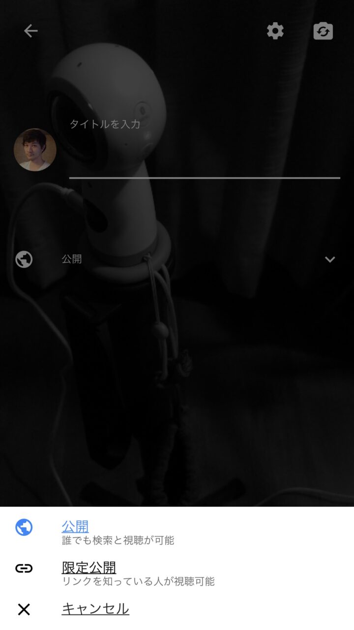 次に “ライブ配信” のタイトルを設定します。タイトルを設定しないと “ライブ配信” を行うことはできません。このほかこの画面では公開範囲の設定や収益設定などを行うことも可能です。