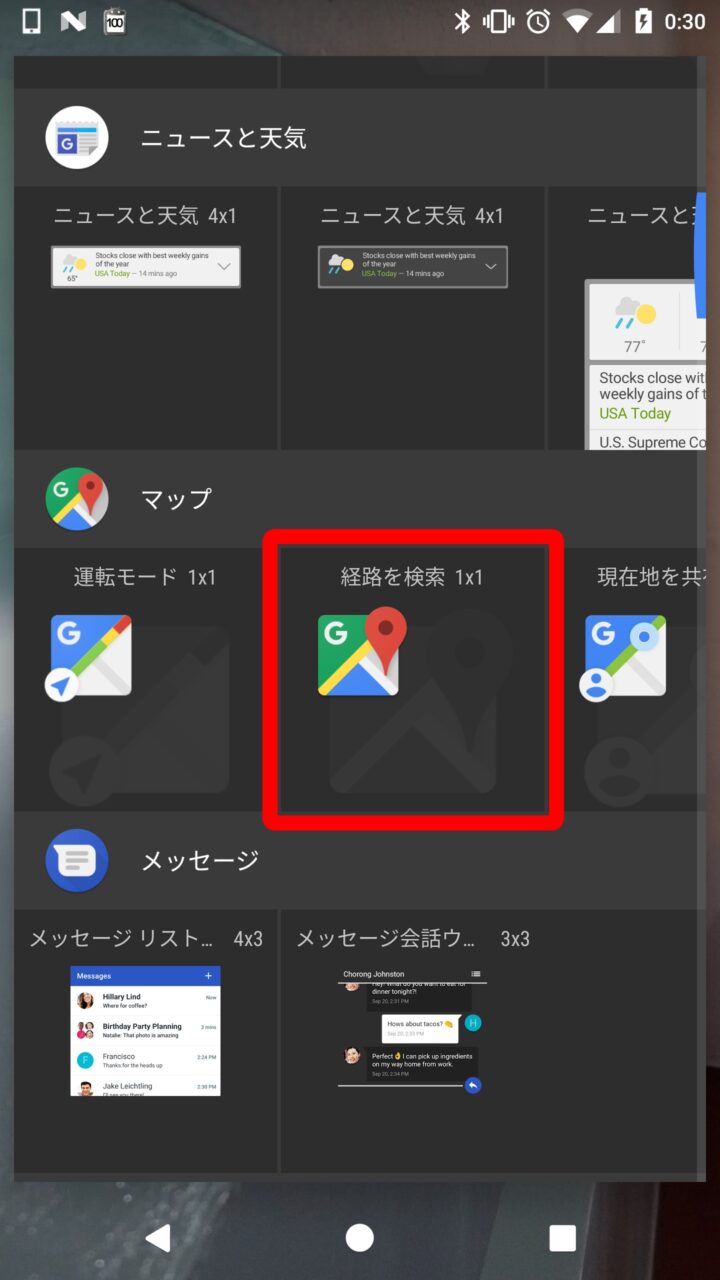 以上、Android 版「Google マップ」アプリの “経路の検索” ウィジェットの使い方の解説でした。
