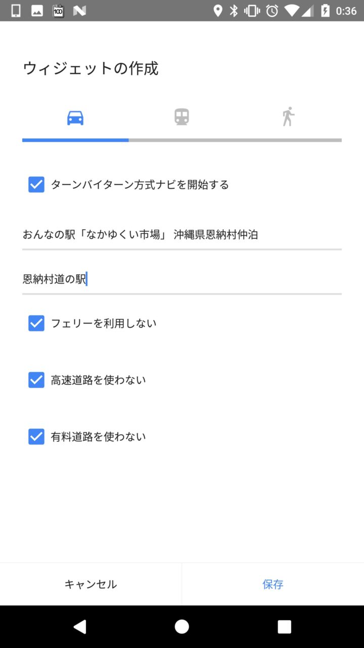 全て設定して “保存” をタッチすれば “経路の検索” ウィジェットの設定は完了です。あとは「Google マップ」のナビゲーションを開始する際に設定したショートカット名のウィジェットをタッチすればすぐにナビゲーションが開始されます。