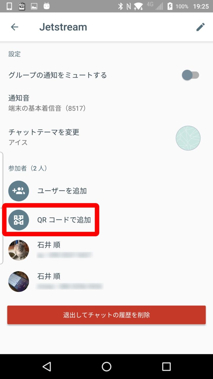 まず QR コードによる招待機能は “QR コードで追加” をタッチして QR コードを表示して、招待するユーザーのスマートフォンで QR コードを読み取ってもらいます。