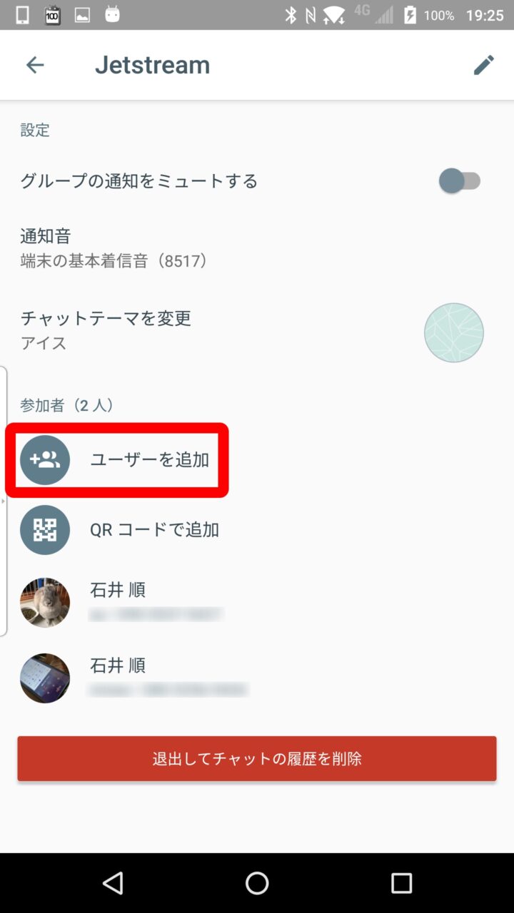URL リンクで招待する場合は、Android では “グループの詳細” ページの “ユーザーを追加” をタッチして、表示される “招待リンクを共有” をタッチし招待するユーザーに向けてメッセンジャーなどで URL リンクを送信します。