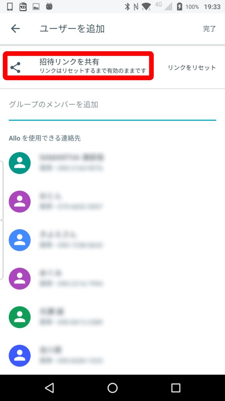 「Google Allo」のグループチャットへの招待機能