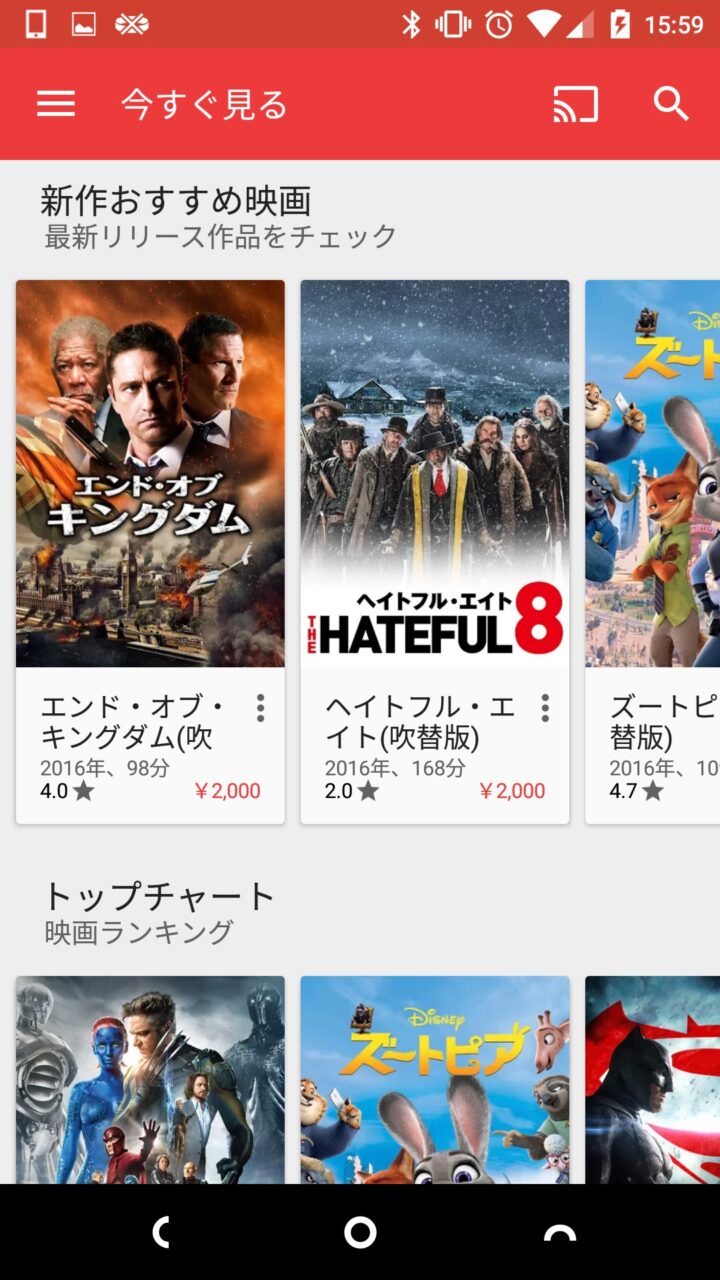 「Google Play ムービー & TV」は、よくある、月定額の見放題となる動画サービスとは異なり、1 つの動画ごとに支払いを行う方式となっています。