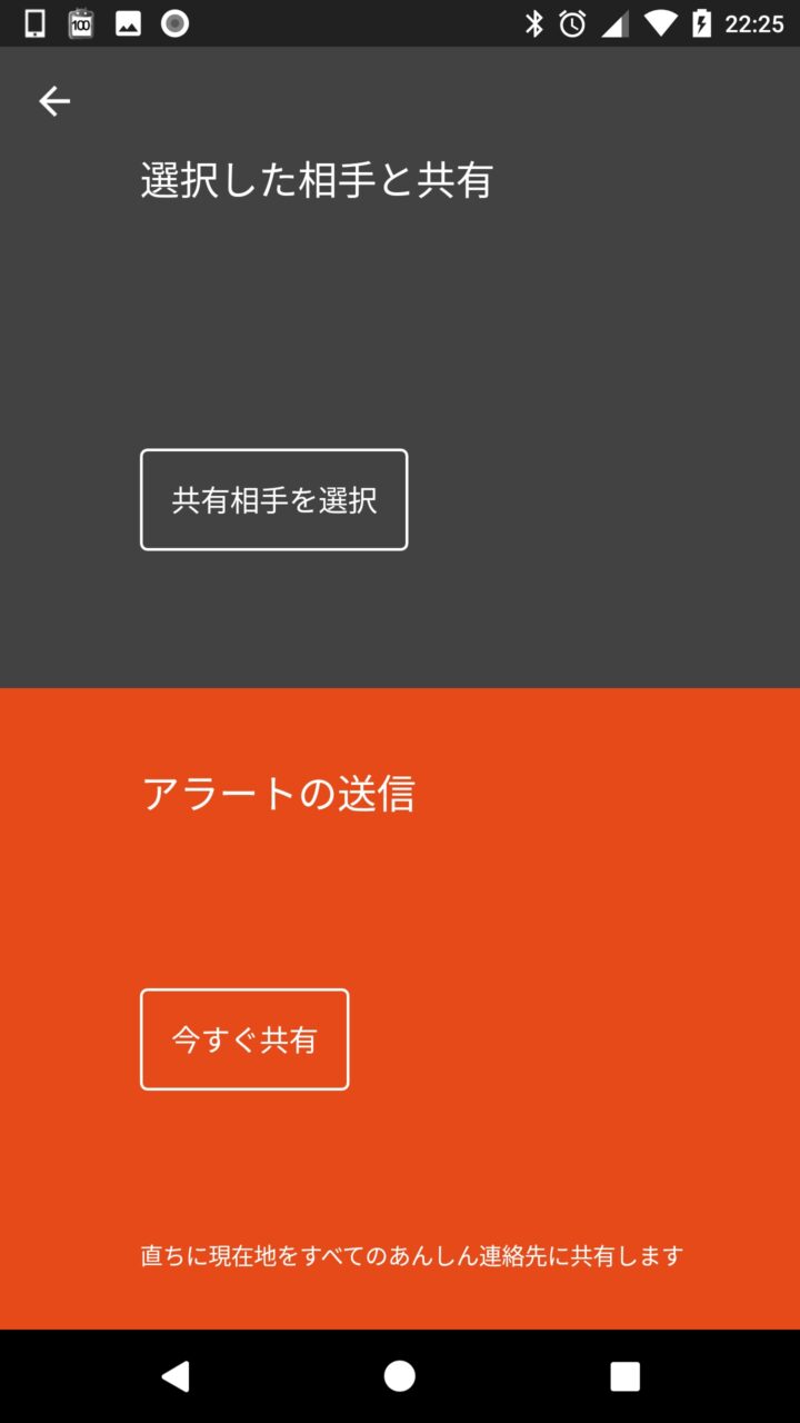 “今すぐ共有” は登録しているユーザーすべてに現在地情報が共有される、かなり緊急性の高いメニューとなります。