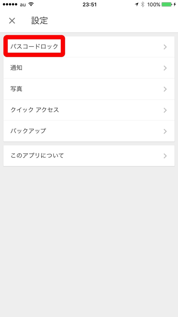 表示される設定ページ一番上の “パスコードロック” をタッチします。