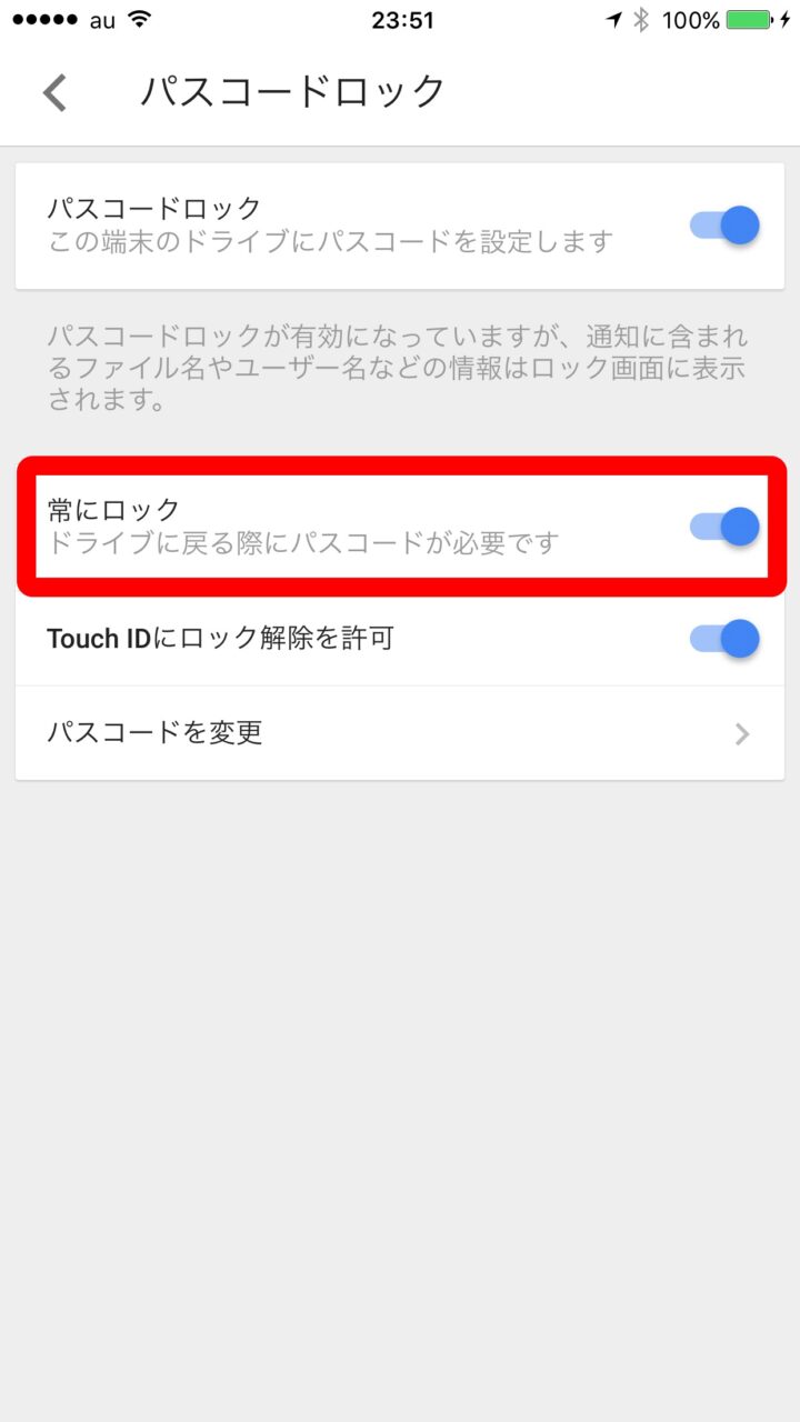 以上、iOS 版「Google ドライブ」に “パスコードロック” を設定する方法のご紹介でした。