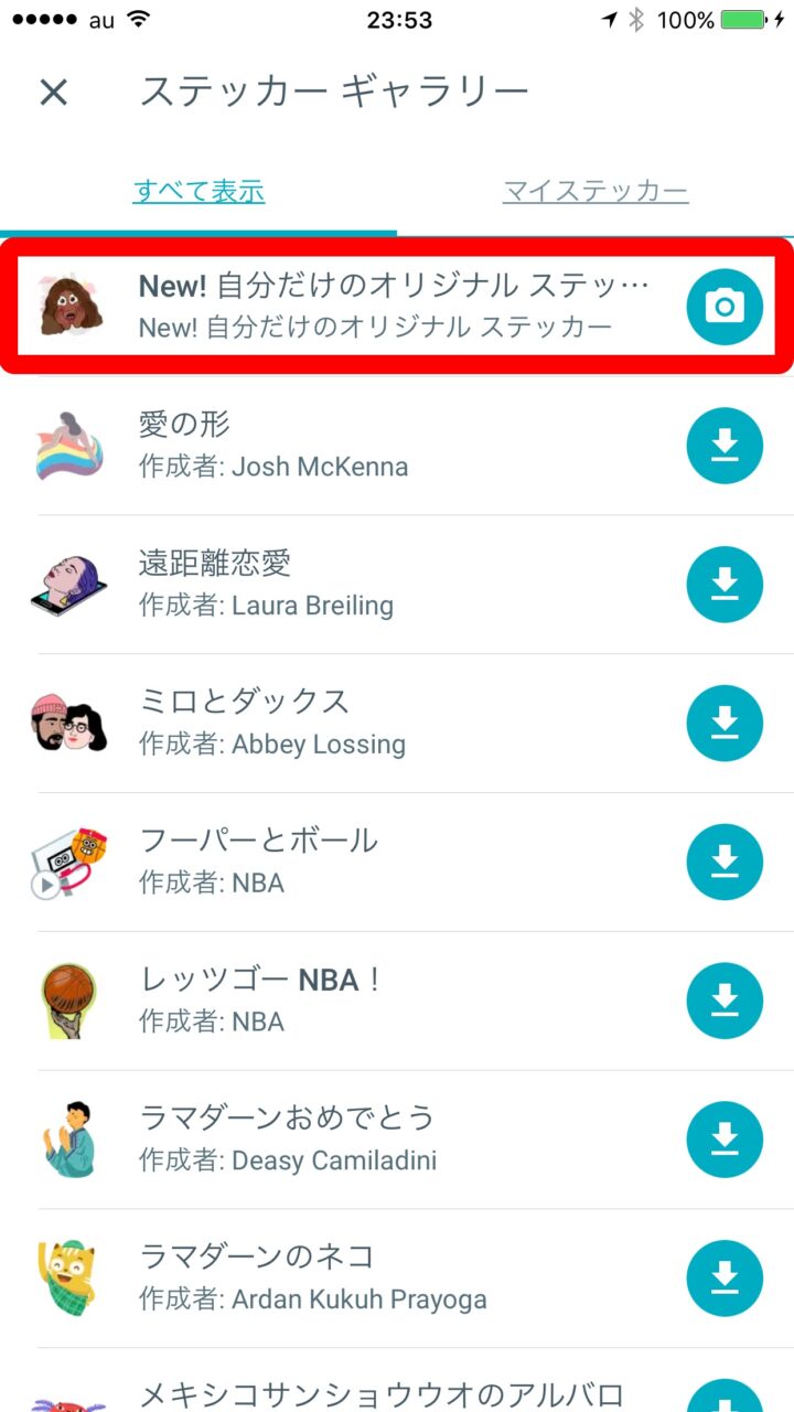 “すべて表示” タブの一番上に表示される “自分だけのオリジナルステッカー” をタッチします。