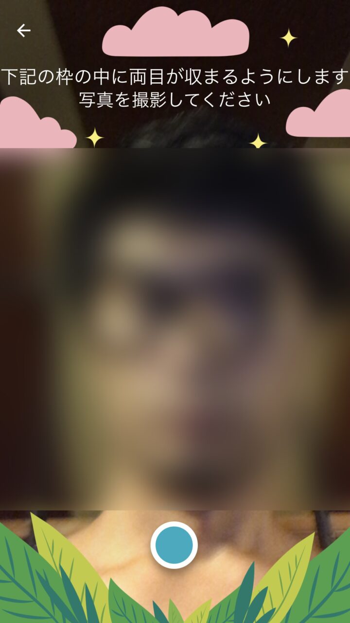 次に “作成” をタッチし、更に表示される画面の眼鏡部分に目が合うように自撮り写真を撮影します。