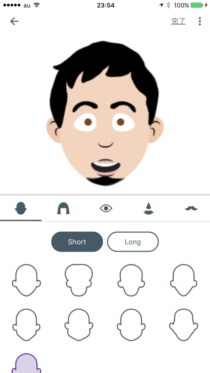 すると 10 秒程度でオリジナルステッカーの原案が作成されます。この状態で保存してすぐにステッカーとして使用することもできるほか、“カスタマイズ” をタッチして顔のパーツを変更して更にカスタマイズすることも可能です。