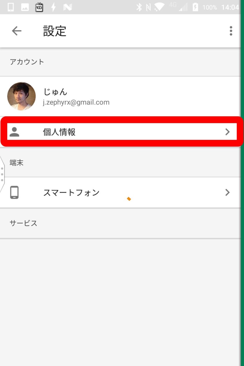 表示される「Google アシスタント」の設定ページの中の “個人情報” をタッチします。