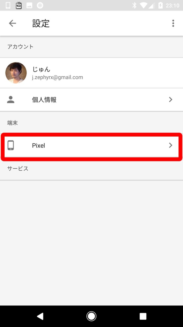 表示される設定画面の “端末” カテゴリにある機種名や “スマーフォン” などの項目をタッチします。
