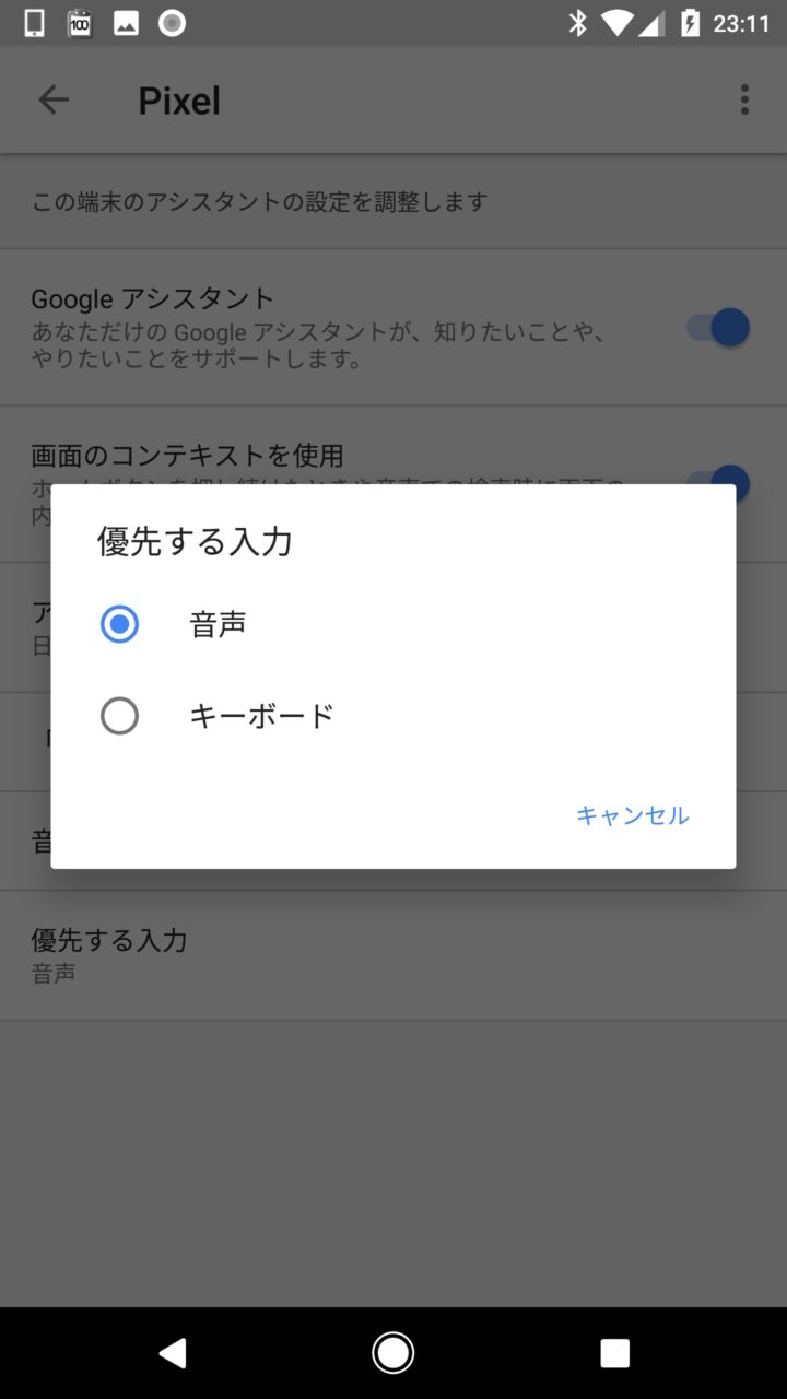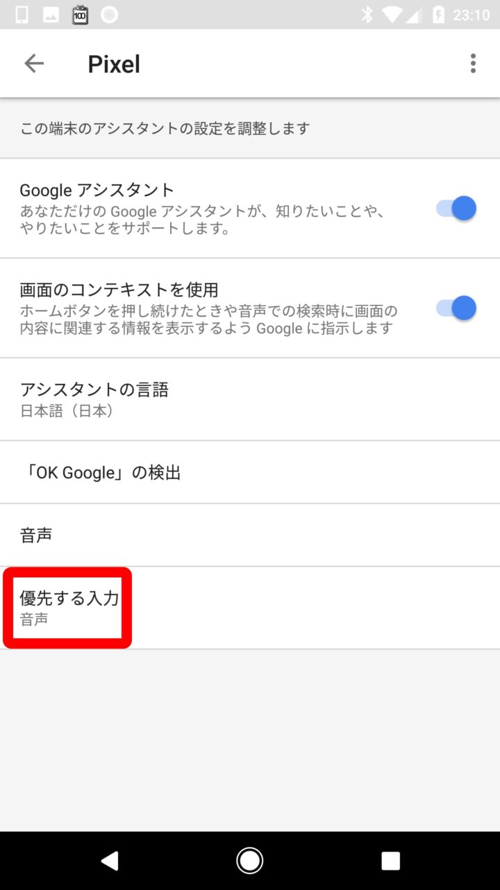 これで「Google アシスタント」を起動した際に文字入力を優先して行うことができるようになります。