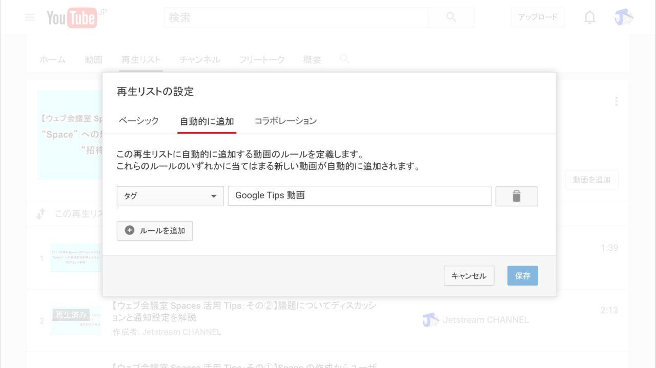 ここで、自動で動画が追加されるためのルールを設定します。